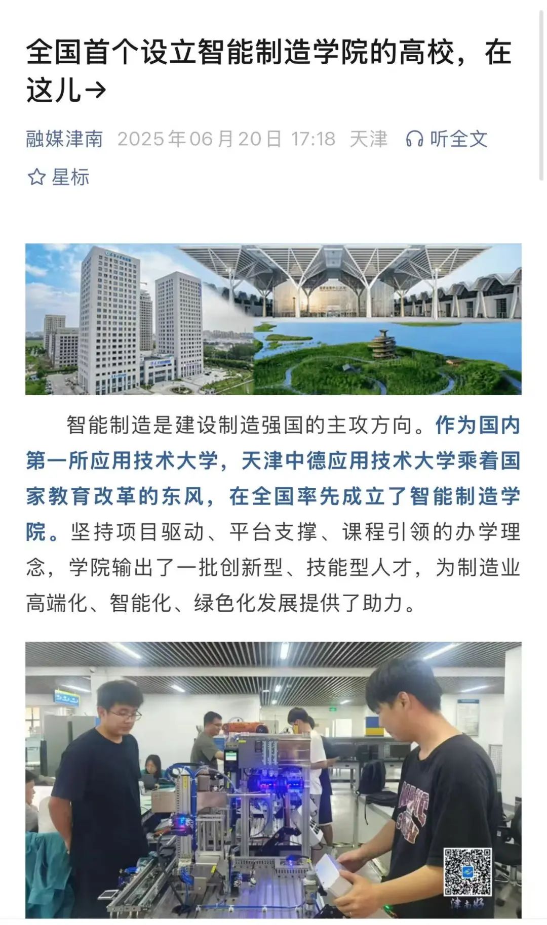 6月20日,融媒津南报道新葡萄智能制造学院,全文如下: