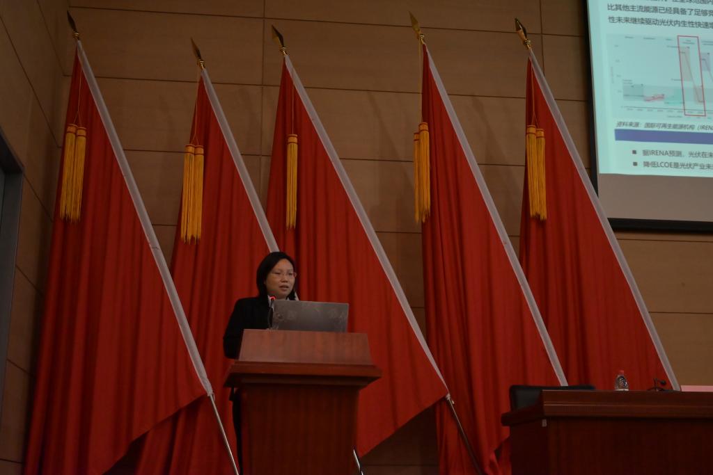 随后,TCL中环新能源科技股份有限公司副总工程师张雪囡女士和明阳瑞源储能科技有限公司副总经理杜云涛先生分别做了题为《光伏行业发展与技术应用》、《储能行业与技术发展》 的报告。同时,与会师生与报告专家积极互动,与专家就新能源技术发展进行了深入的交流和讨论。