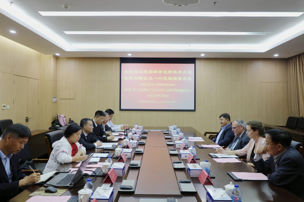 10月8日,德国耶拿应用技术大学校长斯特芬·泰歇尔特教授一行四人来访新葡萄,校长王海龙、副校长郭峰、国交处及相关学院主要负责人与来宾进行了亲切友好的交流。