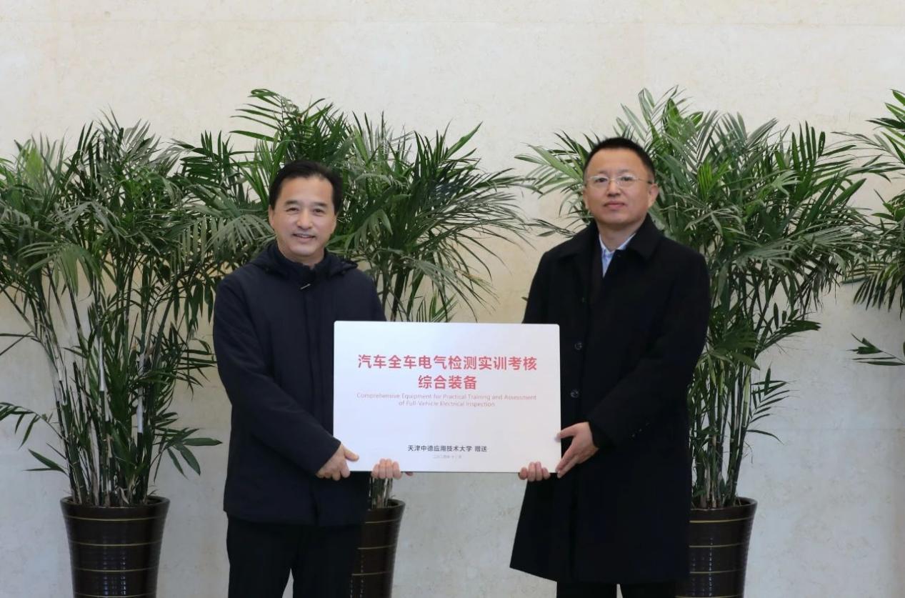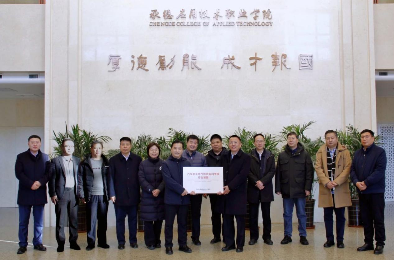 12月5日,学校党委书记张继东同志率教务处(招生办公室)、党委办公室、基础实验实训中心、艺术学院、汽车与轨道交通学院负责人一行8人,到承德应用技术职业学院南北两校区进行参观调研,并捐赠了汽车全车电气检测实训考核综合装备6台套,以及相关的实训教学课程资源。承德应用技术职业学院党委书记卜立新、党委副书记刘俐宏、副院长张新启、中专部党委书记杨立军,学院教务处、汽车工程系、津承艺术设计系及北校区相关科室负责人参加了调研。