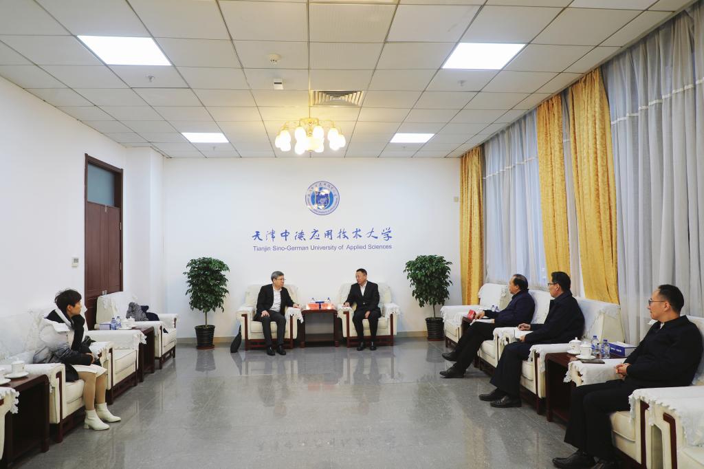 11月29日,九三学社天津市委会秘书长严海到新葡萄走访调研,学校党委书记张继东、党委副书记董杰接待来访并进行了交流座谈。学校党委统战部、党委办公室(校长办公室)负责同志及九三学社新葡萄AMG官方网站支社负责人陪同座谈。