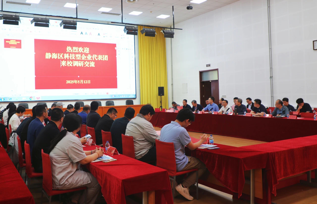 5月12日,静海区科技局党组书记、局长信海喜,工商联党组书记、常务副主席侯晓东等4名同志率23家静海区科技型企业代表赴新葡萄开展调研交流活动。学校党委副书记、校长王海龙,校党委常委、副校长关志伟,及相关学院、部门负责人及科研骨干全程参与。双方通过实地考察与深度座谈,聚焦智能装备、数字化转型等核心领域,共商校企合作新路径,共绘区域经济高质量发展蓝图。