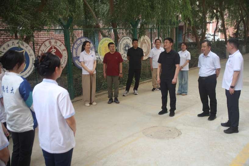 近日,学校党委常委、副校长郭峰一行赴新疆和田地区民丰县援疆支教团驻地,亲切看望慰问在此支教的50名学生及4位带队教师,为他们送去学校的深切关怀及消暑慰问品,并实地了解师生工作生活状况。和田地区行署副秘书长徐玉春、民丰县副县长张捷、学校相关部门负责同志一同参加此次活动。