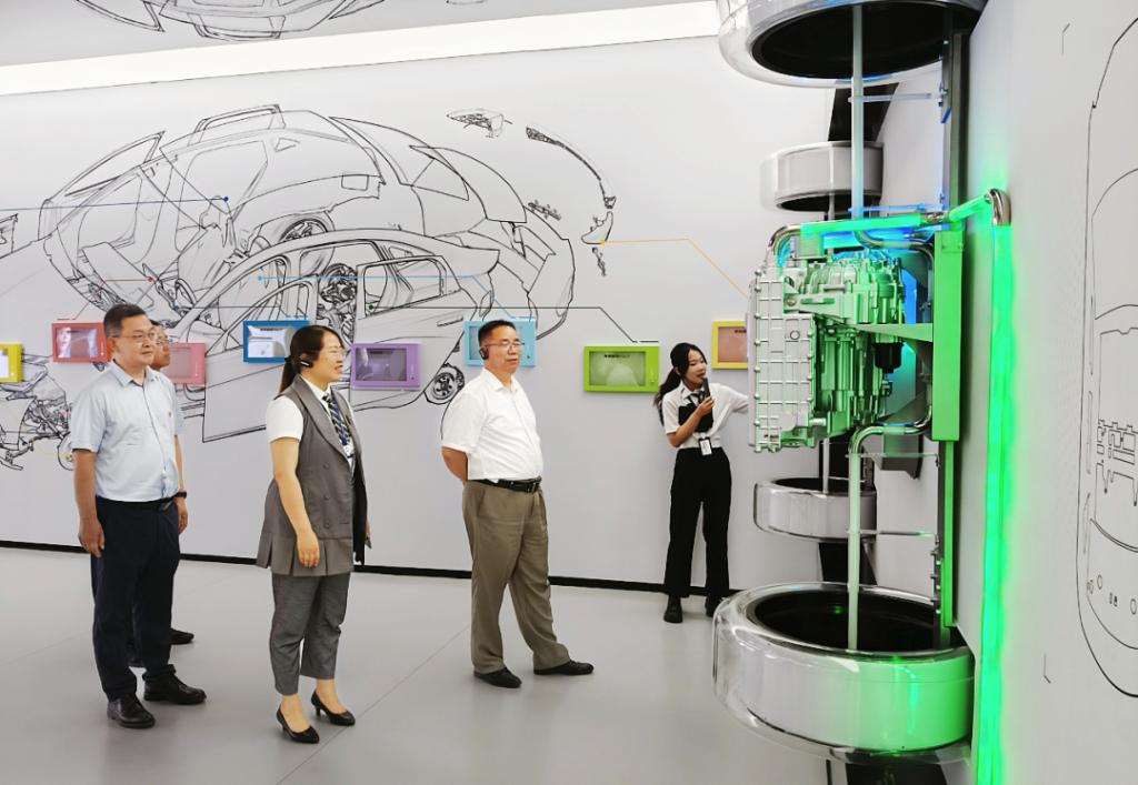在经理刘芝的陪同下,孙更春一行参观了天津比亚迪迪空间(天津馆)。该馆是比亚迪设立的华北地区首个新能源汽车科普馆,通过品牌文化、匠心智造、创新技术、科技探索四个展区,让老师们沉浸式地了解和体验了新能源汽车的前沿科技,深切感受到我国在新能源汽车领域取得的巨大成就,进一步提升科技自信。
