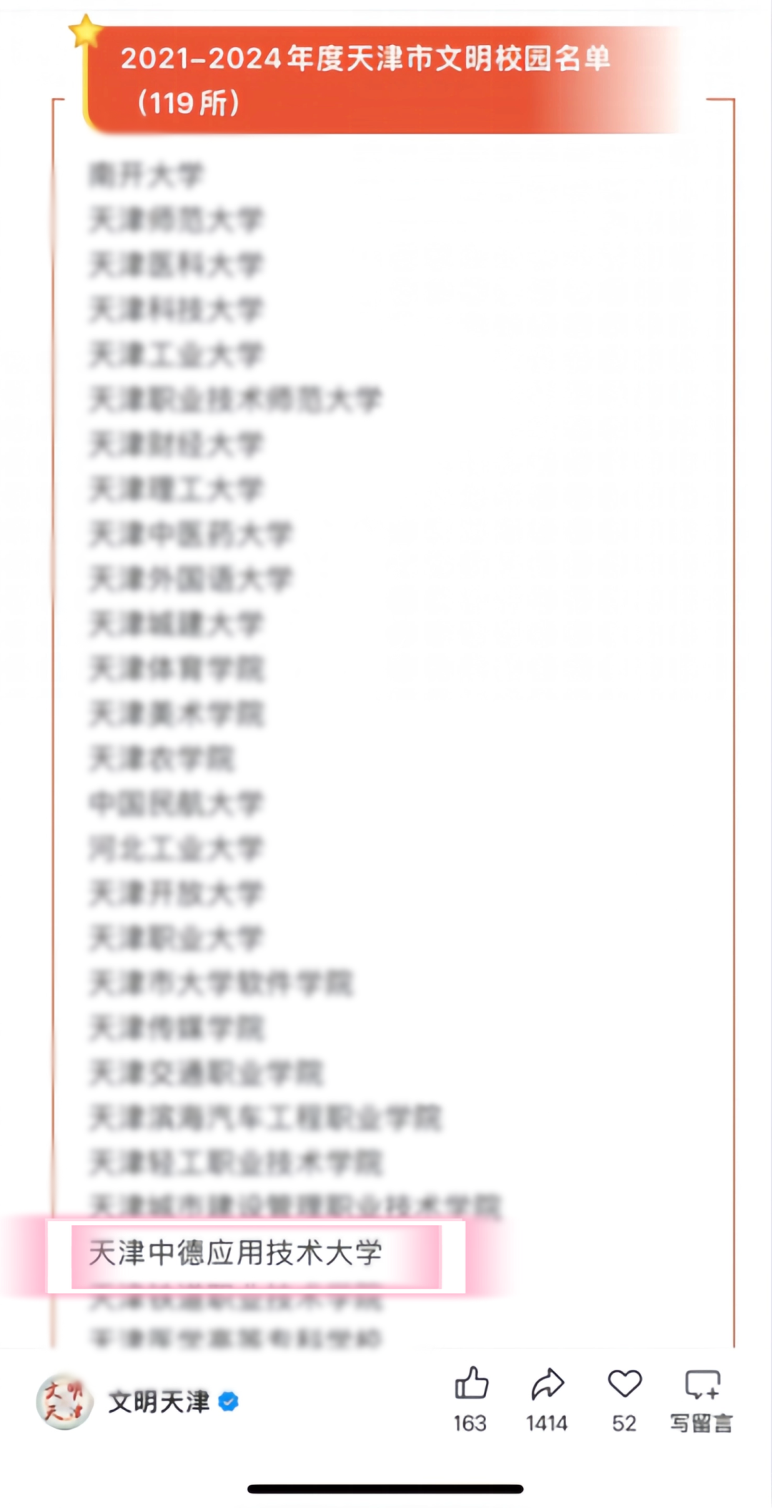 7月3日,中共天津市委宣传思想文化工作领导小组召开天津市精神文明先进表彰座谈会。会议宣布关于认定命名天津市精神文明建设先进的决定。新葡萄获批2021-2024年度天津市文明校园。