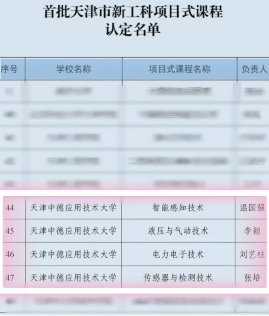 近日,天津市教育委员会公布首批市级新工科项目式课程建设名单,新葡萄AMG官方网站申报的《智能感知技术》《液压与气动技术》《电力电子技术》《传感器与检测技术》四门课程全部获批,标志着学校在新工科建设领域取得重大突破。此次入选课程数量位居天津市高校前列,充分体现学校在产教融合、课程改革及创新人才培养模式上的显著成效。