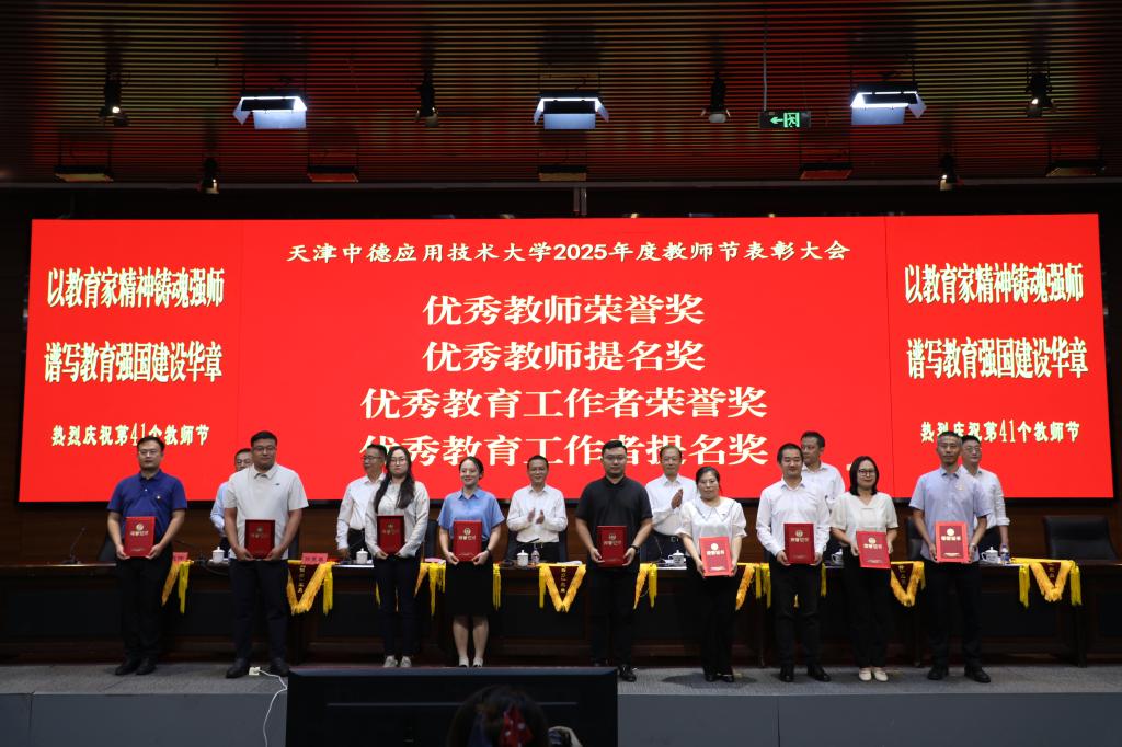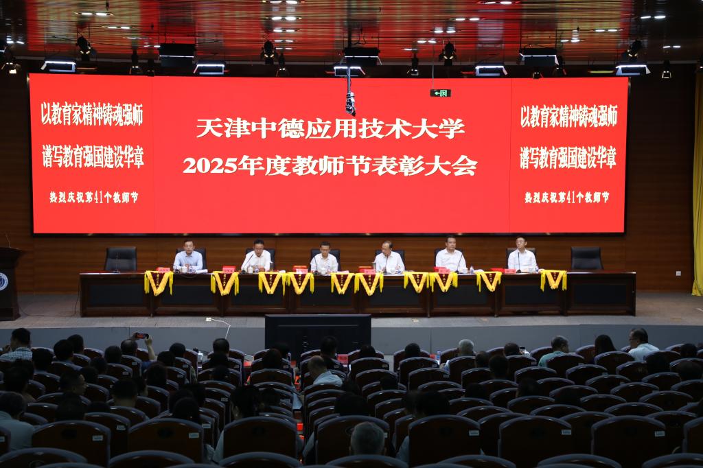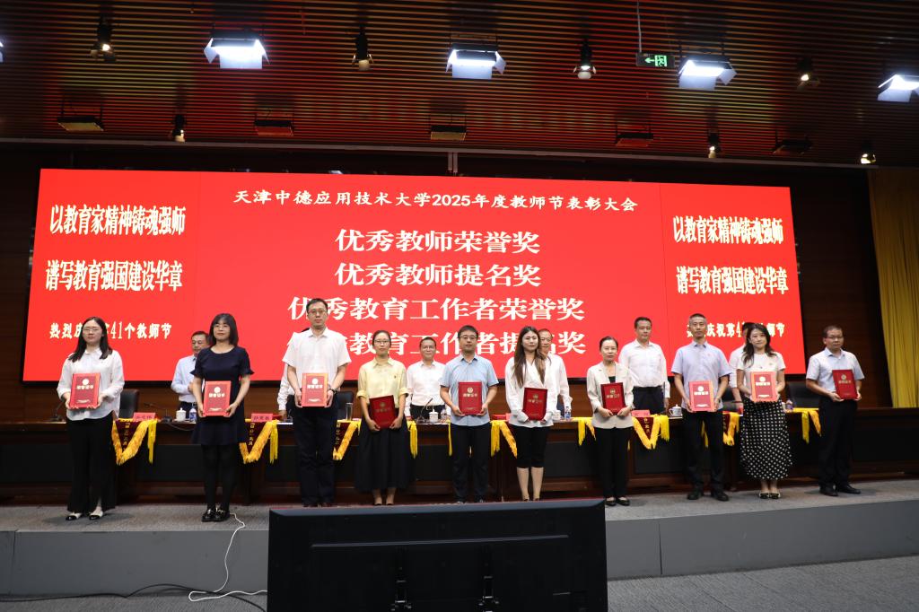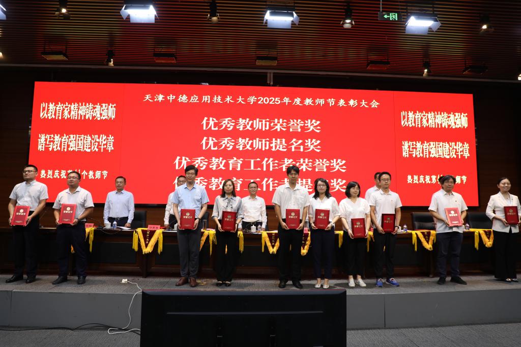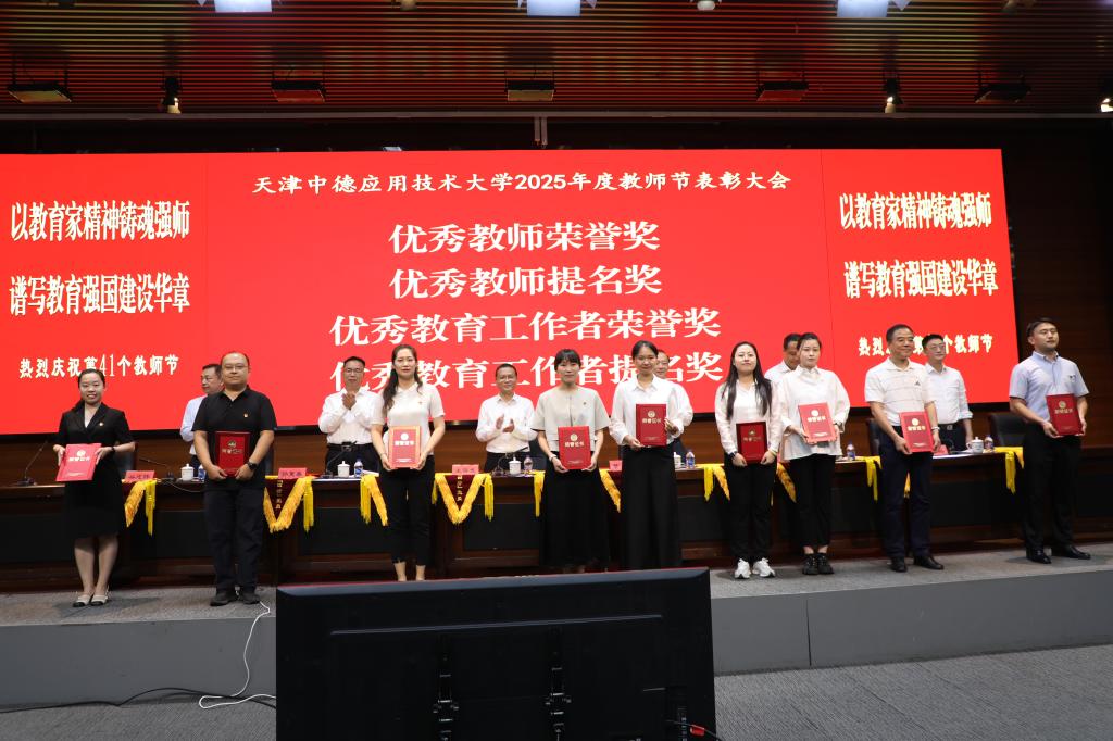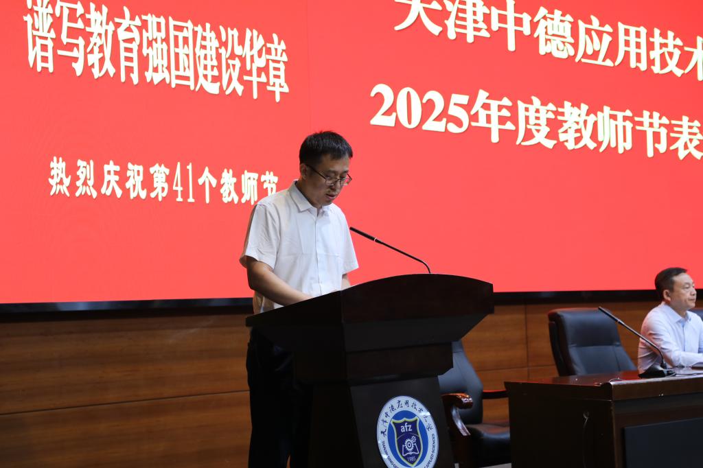 王海龙作总结讲话,他代表学校向全体教师致以节日的问候,向获奖的优秀教职工致以崇高的敬意,希望广大教职工牢记为党育人、为国育才的初心使命,树立“躬耕教坛、强国有我”的志向和抱负,以教育家为榜样,大力弘扬教育家精神,秉承“崇实、求精、致良知”校训精神,扎根中德应大,以实际行动助力学校内涵式高质量发展,为学校2030年建成世界一流应用技术大学,为天津市现代化大都市建设和中华民族伟大复兴伟业培育新人,输送力量。