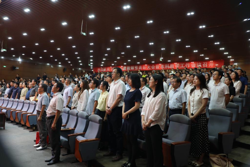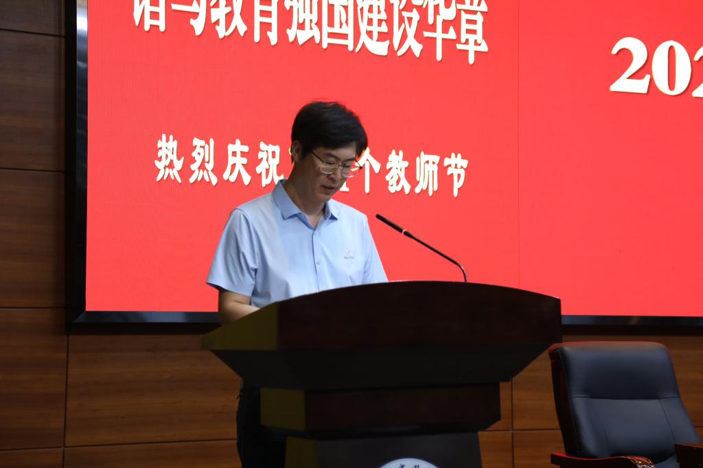 9月12日下午,学校在A座行政会议中心A110报告厅隆重举行主题为“以教育家精神铸魂强师,谱写教育强国建设华章”教师节表彰大会。校党委副书记、校长王海龙,校党委副书记董杰、孙更春,校党委常委、副校长高翔、关志伟、郭峰出席大会。学校全体处级干部,受表彰先进个人,各教学单位系主任、专业带头人以及教师代表,共计300余人参加会议。