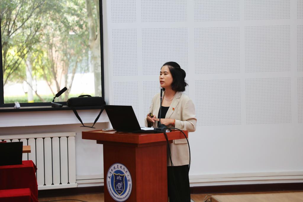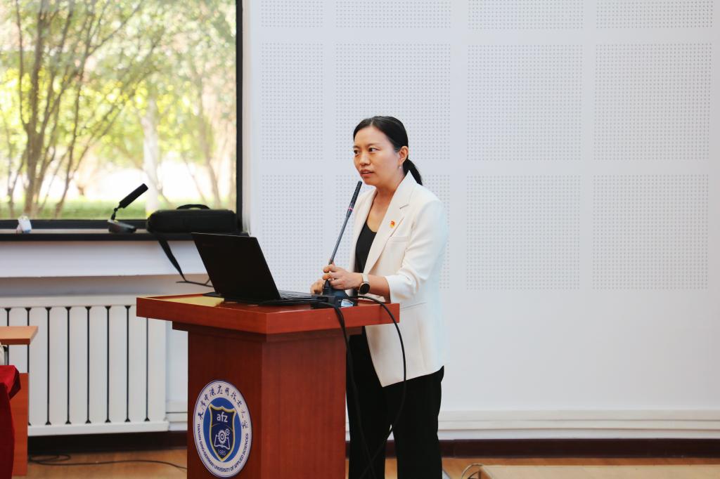 在教学专题分享环节,形势与政策教研室两位教师进行了教学展示。周媛媛老师以《纪念抗战胜利 坚定民族信念》为主题展开分享,围绕“铭记历史 正义必胜”“精神丰碑 永不磨灭”“珍爱和平 开创未来”三个维度,系统梳理抗战历史脉络和中国共产党在全民族抗战中的中流砥柱作用,生动阐释伟大抗战精神的时代价值,引导学生从历史中汲取奋进力量。