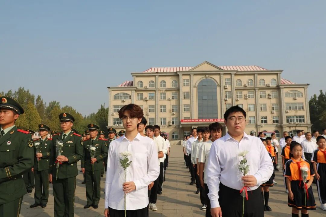 首先进行的向烈士敬献花篮仪式,在部队英烈墙前庄重举行,大中小学师生代表50多人参与。现场,礼兵挺拔伫立,《国歌》激昂旋律响彻营区;全体人员默哀,深切缅怀为国家独立、人民幸福牺牲的英烈;少先队员代表身着红领巾,以嘹亮歌声献唱《我们是共产主义接班人》,稚嫩嗓音中满是对红色基因的传承;伴随着《献花曲》,花篮缓缓敬献至英烈墙前。随后,师生们手持鲜花,依次瞻仰英烈墙,将花朵轻轻献放在英烈墙下。学子们全程肃立参与,在庄重仪式中感悟英烈精神,接受深刻的思想洗礼。