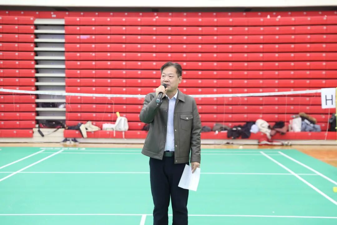 校党委书记张宗旺出席开幕式并宣布比赛正式开始,校党委副书记、工会主席董杰在开幕式上致辞,校党委常委、副校长、校羽毛球协会会长郭峰为比赛开球。之后,运动员代表、软件与通信学院张林琳代表运动员宣誓。裁判长贺传宝携全体学生裁判员承诺确保执裁公平公正。