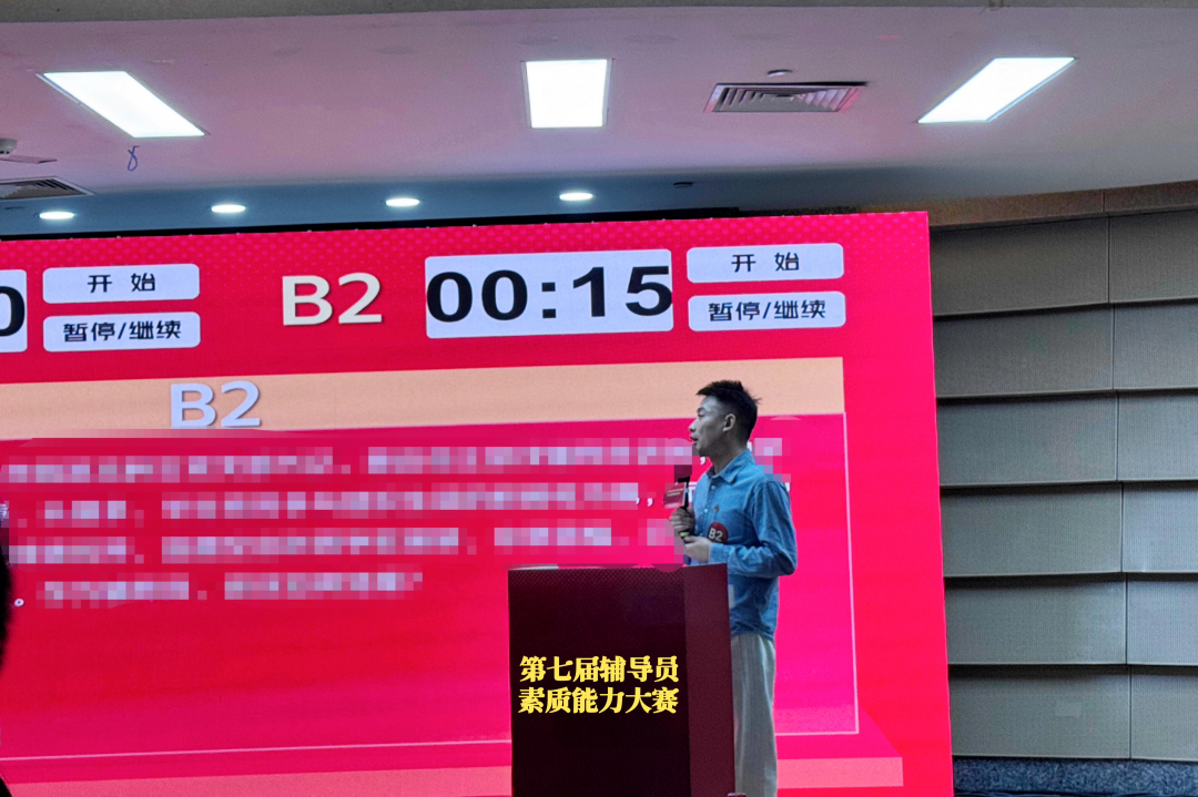 本次大赛设置基础知识测试、案例研讨、谈心谈话三大核心环节,全面考察辅导员的思想政治理论素养、应急处突能力、情感沟通技巧等核心职业能力。作为扎根学生工作一线的“老兵”,王峰凭借扎实的理论基础通过基础知识测试环节,晋级前40名。现场展示环节,他将日常积累的育人经验转化为赛场攻坚的坚实底气,面对呈现的学生问题时,他深入分析原因,提出解决措施,总结育人规律,展现出了过硬的专业技能和优秀的职业素养。