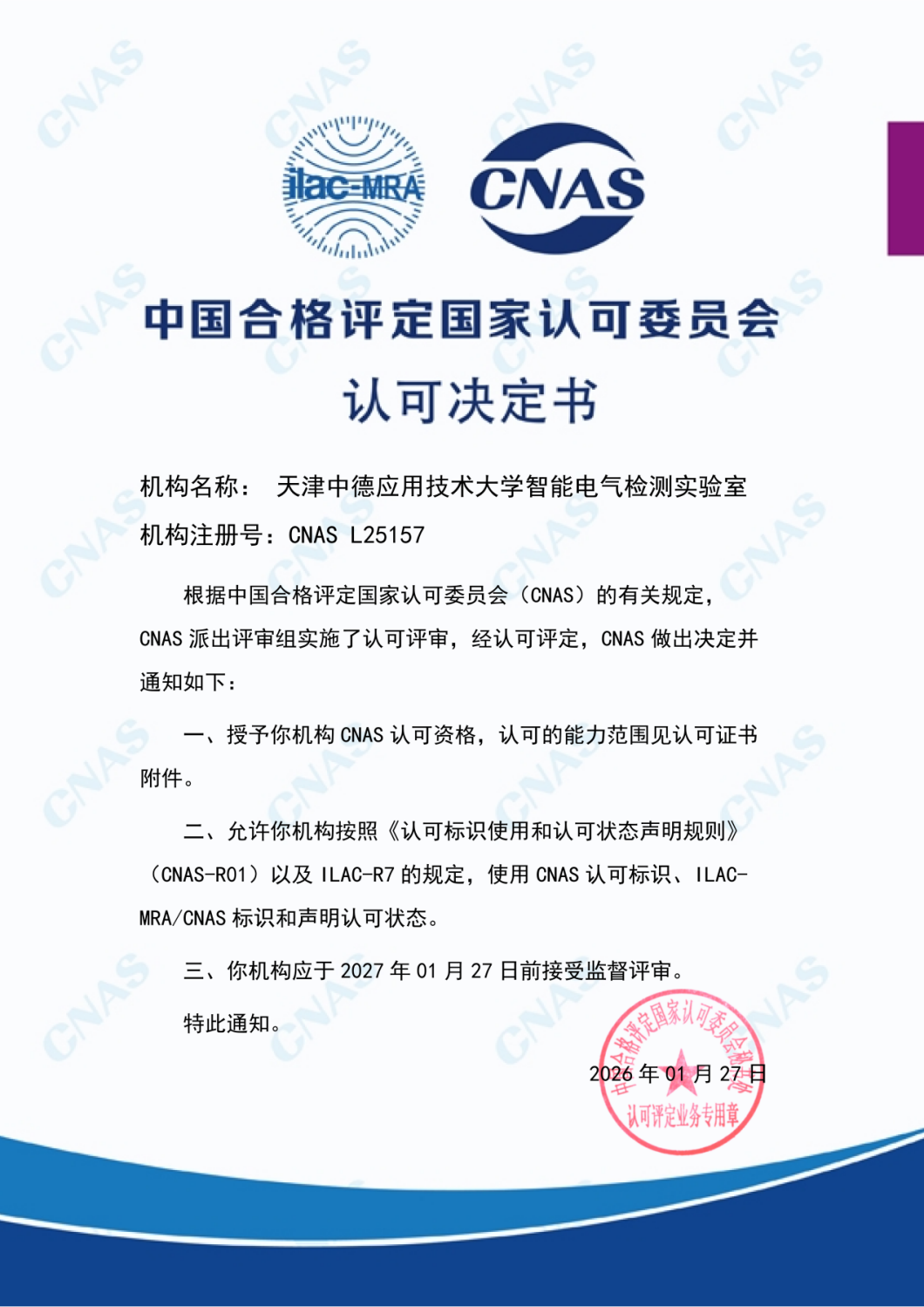 近日,新葡萄AMG官方网站智能电气检测实验室顺利通过中国合格评定国家认可委员会(CNAS)现场评审,正式获得 CNAS 实验室认可资质,标志着该实验室的检测能力符合 ISO/IEC 17025 国际标准及国家认可要求,具备出具获得全球互认的检测报告的资质。在为期两天的紧张评审中,实验室严谨公正地组织完成了对各项体系文件及现场操作的全面审核。新葡萄智能制造学院相关人员等出席会议。