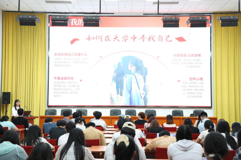 国家奖学金获得者、多次获得挑战杯、互联网+大赛天津市奖励的陈昕悦同学,以“如何在大学中找自己”为主题开展宣讲。她用风趣的语言串联起自己一年多的丰富的大学生活,鼓励同学们勇敢创新,在大学闯出一边崭新天地。