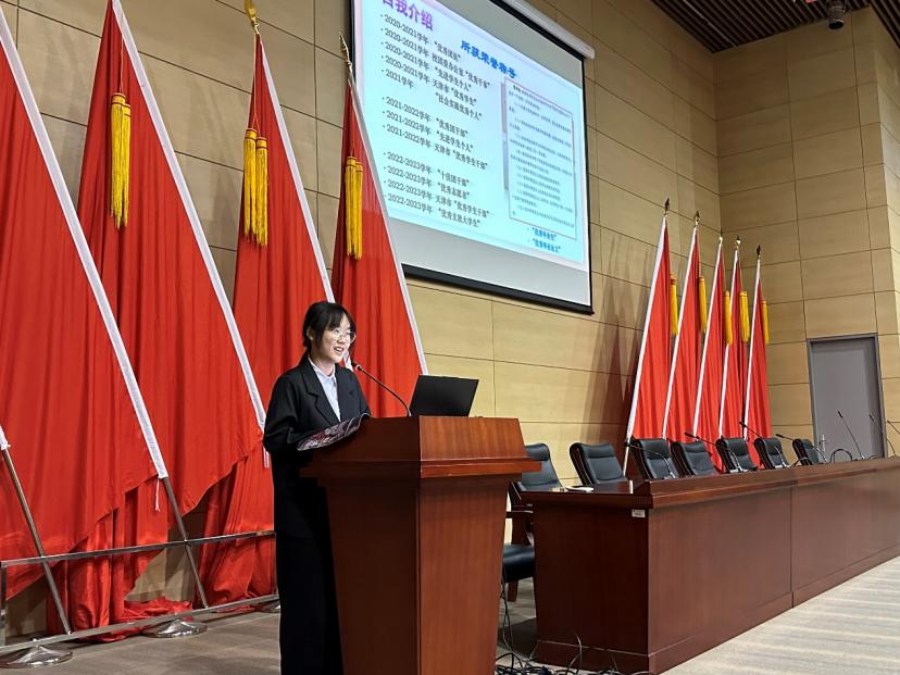 2021-2022学年天津市优秀学生干部、2022-2023学年天津市人民政府奖学金等荣誉获得者李珑玥用自己的经历,以“在大学活出你值得铭记的精彩”为主题,告诉同学要不仅有理论知识的学习,还要注重实践锻炼能力的培养。