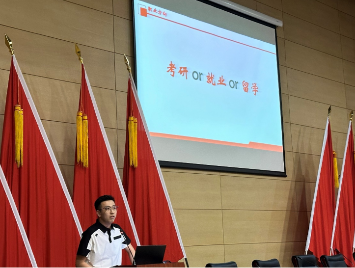 2022-2023学年国家奖学金、2022-2023学年天津市优秀学生干部等奖项获得者金鹏同学通过讲述“人生新阶段 挑战与机遇并存”,希望同学们在未来选择上把握机会,奋起直上。