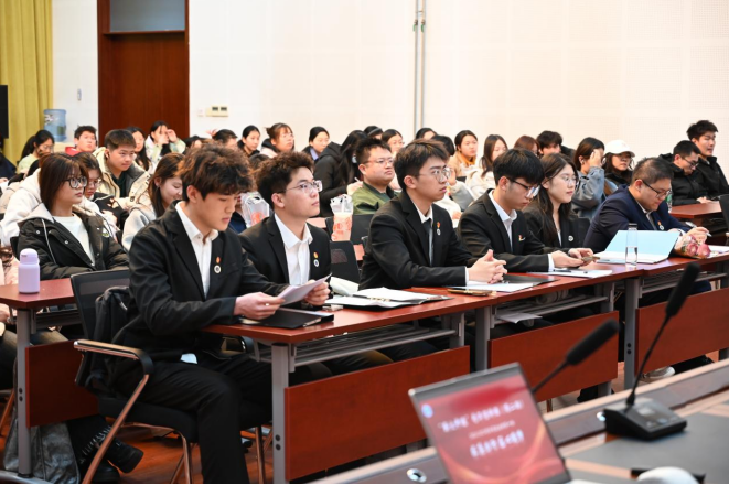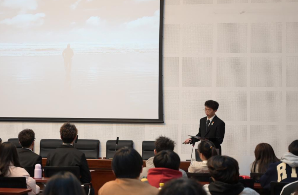 2023-2024学年国家奖学金获得者,机械工程学院张渊伟同学的宣讲主题是“以青春之我,赴时代之约”,讲述自己在求知路上不断追问、实践求索的成长历程,鼓励同学们要勇敢迈出参与科研创新项目的第一步,以积极的姿态拥抱时代。